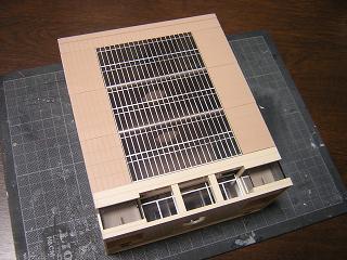 | ・総合ビル(7階建て/5階建て共通) 給電用端子をストラクチャに貼り付けます。 ちなみにライトユニットの配線は、プラ板と銅板の間に 挟んでいます。 |