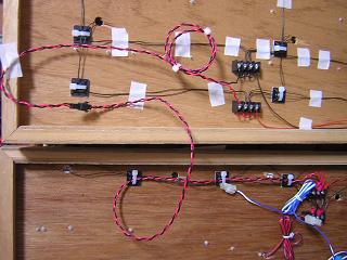 ・駅用ライトユニット配線 今回、屋根裏の配線をどのように処理するかを考えて いましたが、手間やコストを考えた結果、製品に付いている溝に 電線を通すことで目立たないようにしました。 |