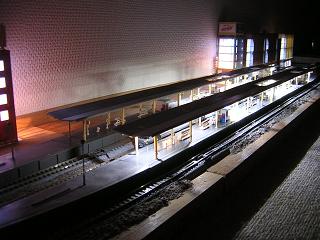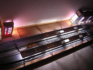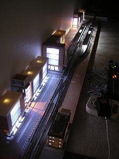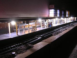 | ・モジュール夜景5 ホームの感じは写真のようになります。 2nd−stepとしての作業はひとまず完了。 残るは3rd−stepの橋上駅舎の照明化となります。 2009-11/1 |