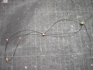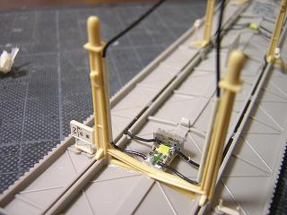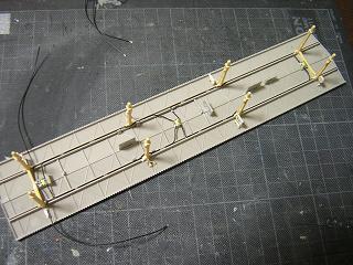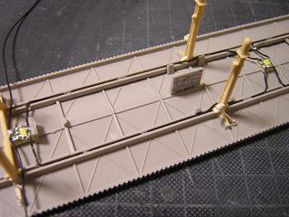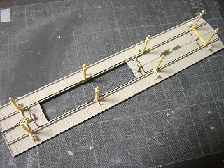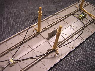 ・駅用ライトの配線 屋根とホームを組んだ状態。 電線は写真のようになります。 |