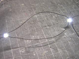 ・駅用ライトユニット仮組み プラットホームの屋根に仮実装し、配線方法と光り具合を 確認します。 |