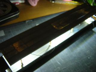 | ・モジュール側配線 ホームと同様に、プラ板と粘着シートタイプの銅板を用います。 写真はベースのプラシート。t=0.5mmを使用しています。 |