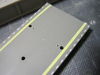 | ・モジュール側配線 ホームへのライトユニット組み込みが完了しましたので、 モジュール側の配線を行います。 ホーム側の端子位置に合うようにモジュール側にも端子を 設けます。 まずは配線用の穴を開けておきます。 |