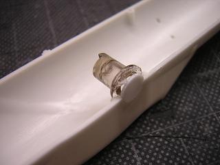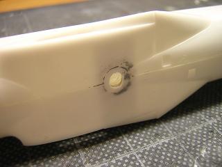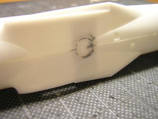 | ・機体組立 埋めたスタンド取付用穴周辺をパテで整形しておきます。 |