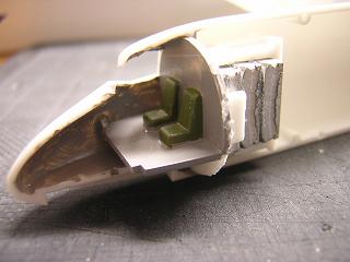 | ・機体組立 ウエイトを接着した操縦席を機体に組込みます。 固定はプラ用セメントを流しています。 |