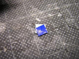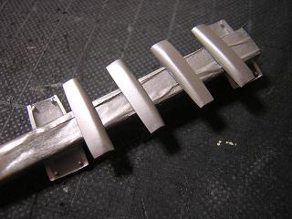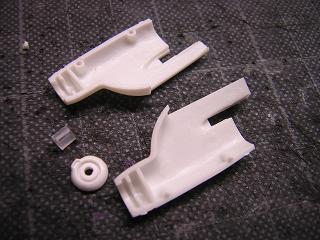 | ・パーツ取付 最終組立に入ります。 エンジン下部の車輪カバーを接着します。 |