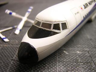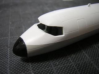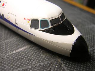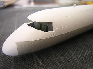 | ・デカール貼付 操縦席窓パーツを実装した状態。 |