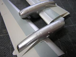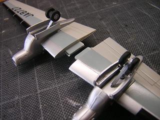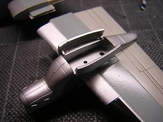 | ・機体塗装その4 エンジン下部の車輪格納蓋も同様に銀色を吹いておきます。 |