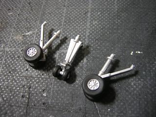 | ・パーツ塗装 車輪は脚とホイール部に銀を、車輪に艶消し黒を色差し しておきます。 これにて塗装工程は完了です。 2009-12/6 |