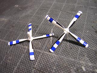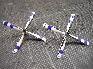 | ・デカール貼付 プロペラは結構複雑なマーキングになっているのですね。 |