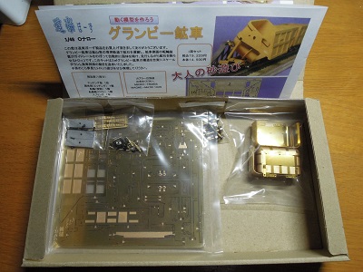 グランビー鉱車3両セット ・キット自体は真鍮のエッチング板の構成で、函体のみ折り 曲げ済みのパーツとなっています。 |